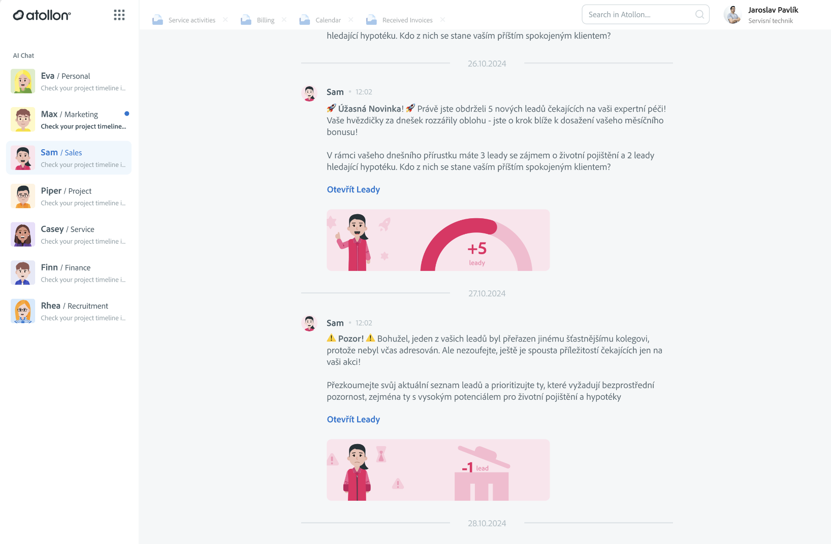 Ve společnosti Atollon jsme strávili 24 let vývojem robustní platformy a nashromáždili téměř 100 let společného úsilí vývojářů. Byli jsme průkopníky "kontextů" dlouho předtím, než se staly normou v dnešním světě řízeném umělou inteligencí. Naše platforma konsoliduje jak strukturovaná transakční data - typická pro systémy ERP (např. zákazníci, nabídky, objednávky) -, tak nestrukturovaná data (např. e-maily, úkoly, dokumenty). Lídři v osmi tržních segmentech využívají tento jednotný přístup ke zjednodušení přístupu ke kritickým obchodním procesům a informacím o projektech.